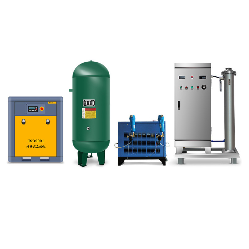 一般采用分級的方式,包括主管道過濾、除油過濾、除塵過濾等,保證進入吸附式干燥機的氣源含油量<0.01mg/M3,保證進入臭氧發(fā)生器的氣源粉塵顆粒度小于0.01μm。